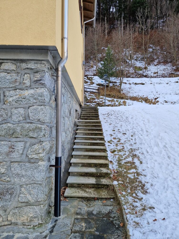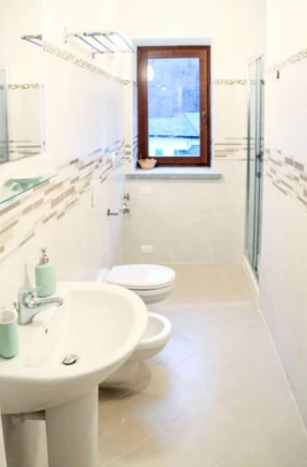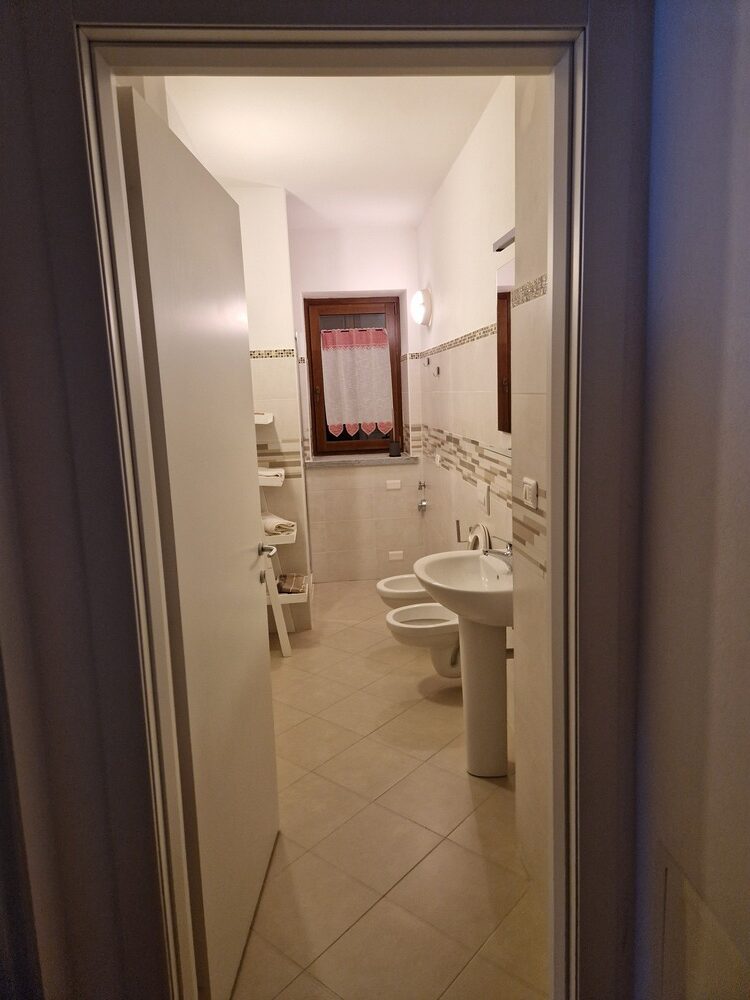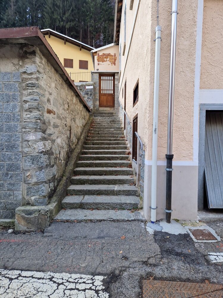 Dal parcheggio della piazza, per raggiungere l'ingresso della casa vacanze, è presente una rampa di scale, come da foto e un percorso pianeggiante sterrato.