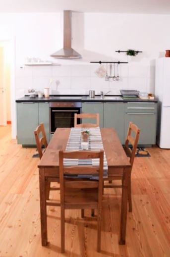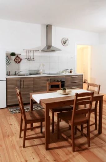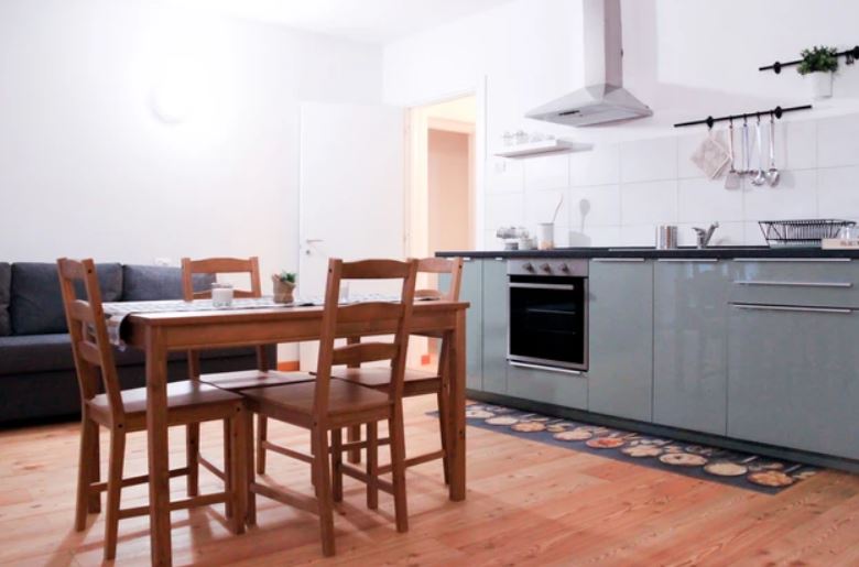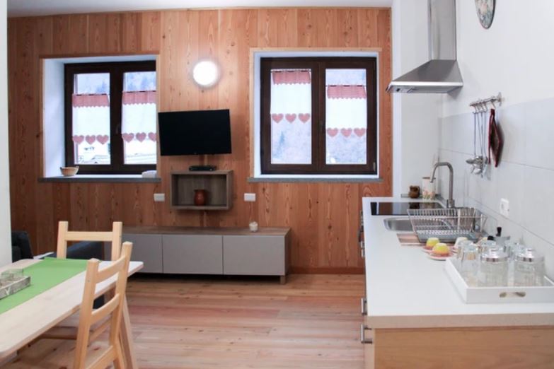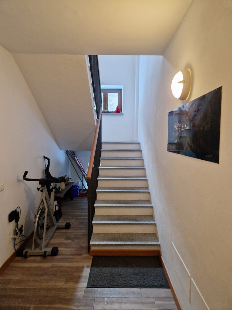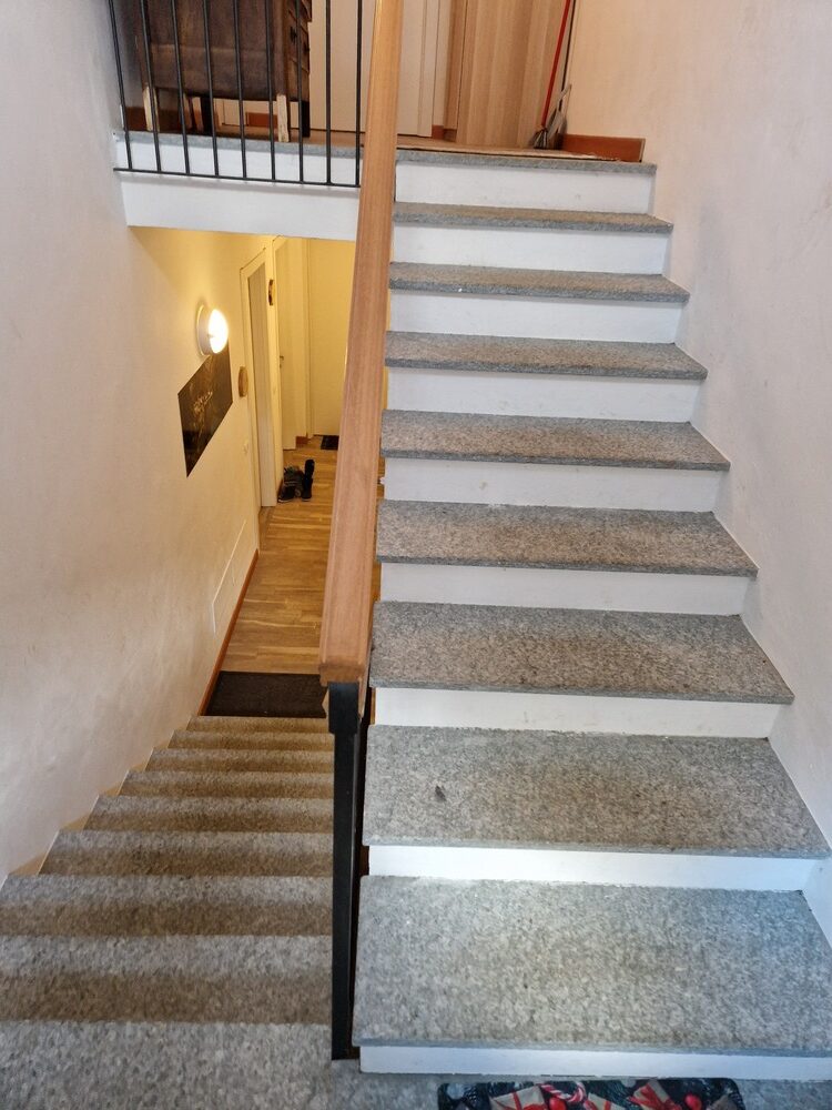 La struttura si sviluppa su due piani, al primo troviamo tre appartamenti e al secondo due. La scala di collegamento è composta da due rampe di scale da 9 gradini (ciascuna) di altezza 18 cm, collegate da un pianerottolo.